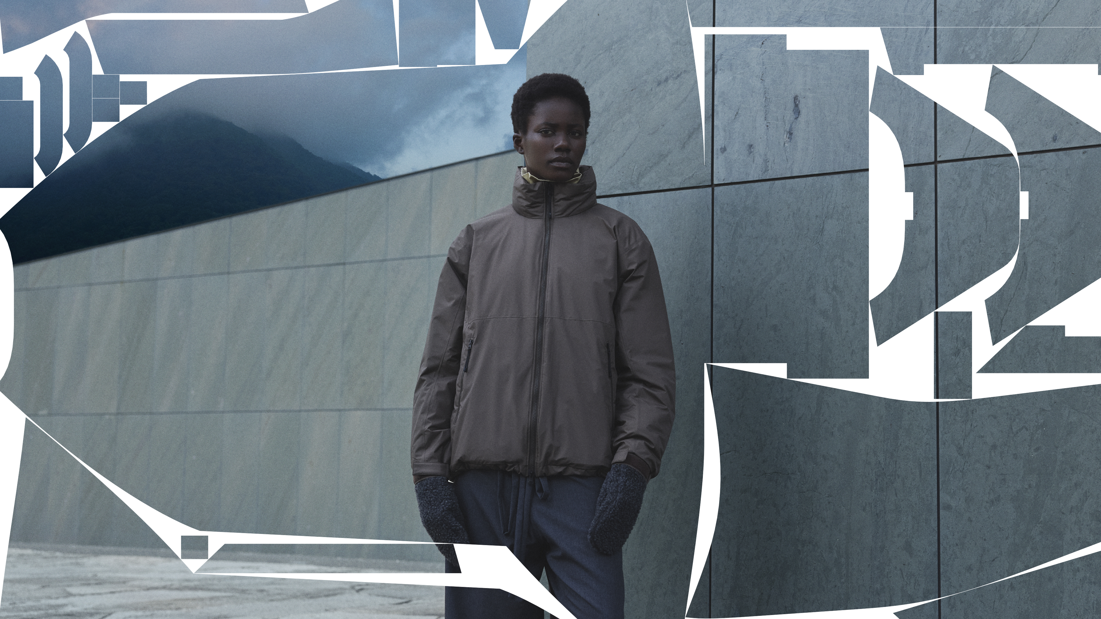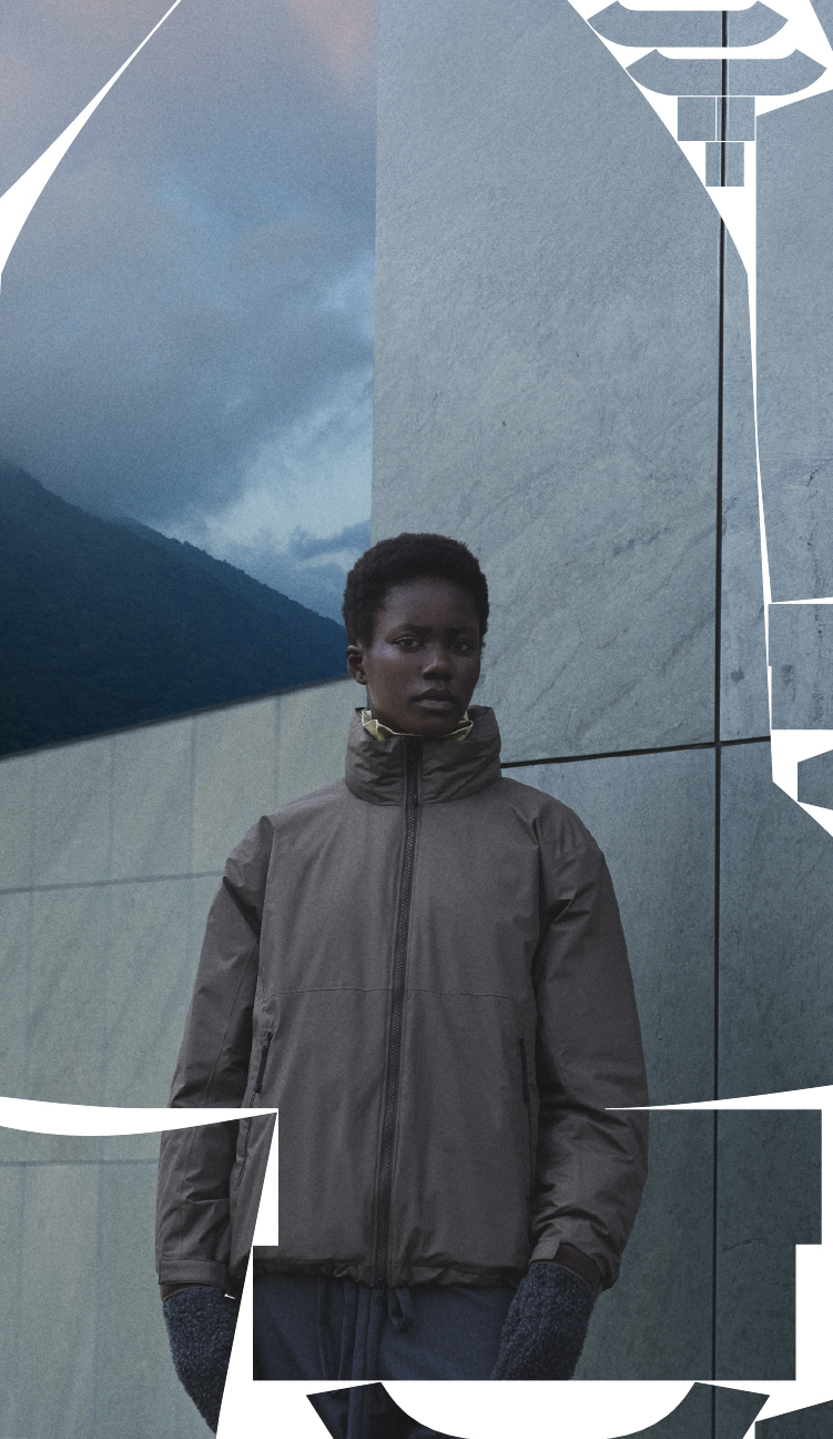 「SYN-GRID」は、アルゴリズムが生成したパターンにGoldwin Tech Labの製造技術が加わることで持続可能かつ機能的なデザインを可能にしています。ゴールドウイン社が重視する機能性やシグネチャーアイテムの象徴的なカッティングを大切にしながらも、Synfluxによってアップデートされる廃棄量削減のためのパターンメイキング。実装するまでに幾度となくディスカッションが行われ、ただ単に合理的であるだけではなく、どのような環境下であっても着る人々のパフォーマンスを向上させる思想が1着に凝縮されています。